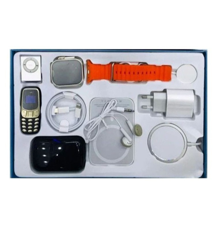 متاسفانه این کالا در حال حاضر موجود نیست. میتوانید از طریق لیست بالای صفحه، از محصولات مشابه این کالا دیدن نمایید.دارای یک ساعت هوشمند و یک عدد بند سیلیکونی و یک عدد شارژر وایرلس و یک عدد mpt player و یک عدد گوشی موبایل و یک عدد ایرپاد و یک عدد پاوربانک و یک عدد کابل شارژر و ادابتور شارژر و شارژر سکه ای پاوربانک