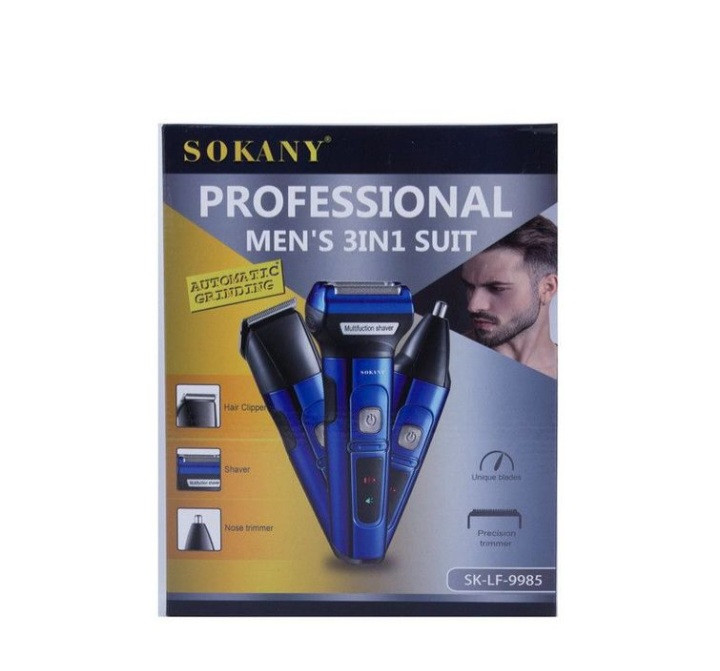 این ماشین اصلاح از برند سوکانی ساخت چین میباشد که مدل آن LF-9985 میباشد. برند سوکانی از جمله کمپانیهای معتبر در دنیا میباشد که به دلیل استفاده از متریال مرغوب و تکنولوژی پیشرفته در تولید محصولاتش شهرتی جهانی دارد؛ بطوری که تمامی محصولات این شرکت دارای کیفیتی اروپایی و مورد تایید استاندارد CE اروپا میباشند. این دستگاه 3 کاره درای 3 سری متفاوت می باشد که هر کدام دارای کاربرد خاصی هستند. سری اصلی آن از نوع فویلی برای اصلاح صورت مورد استفاده قرار می گیرد. سری دوم برای اصلاح موی سر و سری سوم مناسب اصلاح موی بینی است. این مدل، دارای سری تیز از جنس استیل ضد زنگ است که خود تیز شونده هستند -این ویژگی کمک میکند که تیغه کند نشود و پس از بارها استفاده، تیغه تیز بماند و شما به راحتی موهای سر خود را اصلاح کنید-